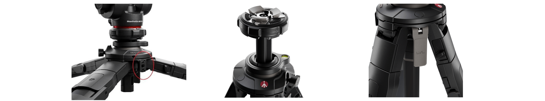三脚のスパイダー部分には、3/8”メスネジ仕様の「イージーリンクコネクター」を装備。小型アーム等と組み合わせて LED ライトや外部モニターなど、撮影に必要なアクセサリーを簡単に装着することができます。アームのネジが緩む方向に負荷がかかっても容易に緩まないよう、マンフロットの「アンチローテーション機構」や ARRI のピンロックにも対応しています。