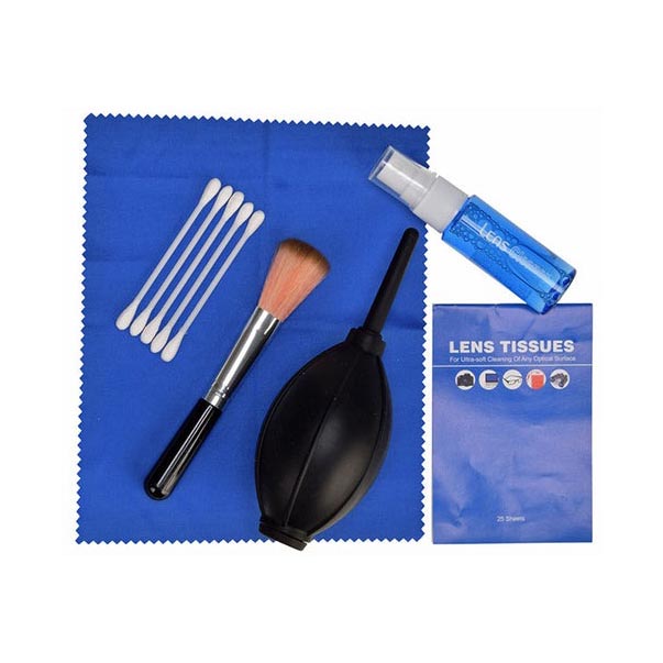 ゴミやホコリを吹き飛ばすブロアー、繰り返し洗って使える極細繊維のクリーニングクロス、ソフトで柔らかいナイロンファイバー製美クリーンブラシはホコリの除去に、指紋や皮脂汚れをしっかり除去するレンズクリーナーとクリーニングペーパー、細部の清掃に便利な綿棒、狙った位置に吹き付けやすいロングノズルタイプのブロアーがワンパック。