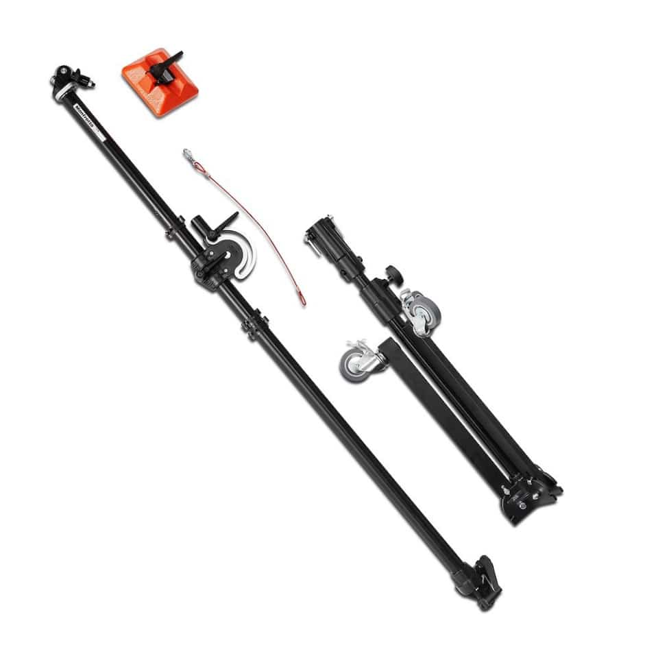 Φ35mm1段ブームにピポットクランプ123、カウンターウェイト022、ケーブルグリップ、キャスター付きコラムスタンドを付属しました。200cm伸長+カウンターウェイト20kg使用時の耐荷重は5kg。ブーム単体の重さは4.1kg、長さ140cm。
