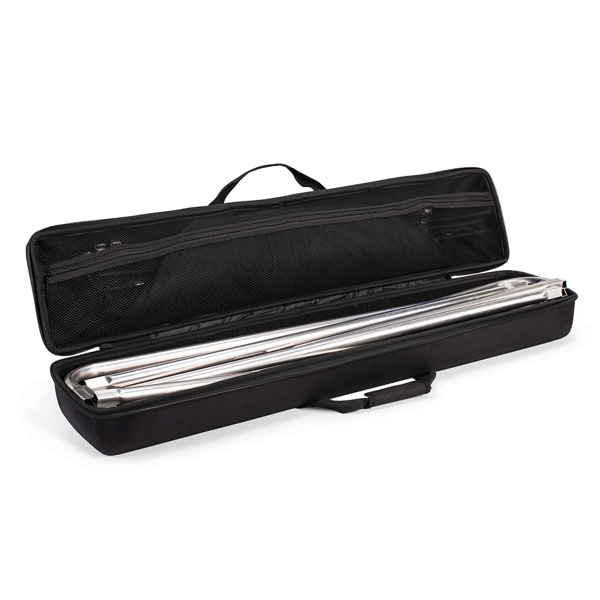 フレームは2mx2.3mと十分なサイズでありながら省スペースで設置することができます。壁に立てかけるだけでなく、同時発売のLL LA8452(イージーフレーム用アルミフレームサポートレッグ)と組み合わせれば自立させることができます。LL LA8452はキットに付属のキャリングケースに収納することができます。