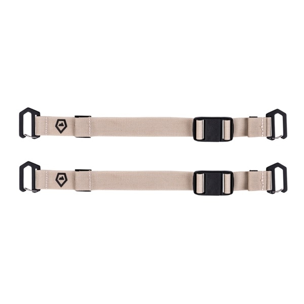 プレミアムアクセサリーストラップスは、プロヴォークやフェルンヴェーのアクセサリーループに取り付け、バッグ外側や底部にジャケットや三脚を取り付けるためのアイテムです。発売中のアクセサリーストラップスよりも素材が強化され、留め具にメタル素材を用い、耐久性に優れています。マグネット式のバックル部により着脱も容易になり、また、ベルクロで余ったストラップをコンパクトにまとめられます。