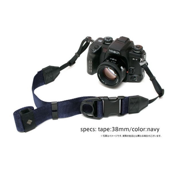 ・アセタール樹脂製のバックルは、頑丈かつカメラを傷つけない。車内など狭い場所でカメラ脱着が容易な大型のバックル。