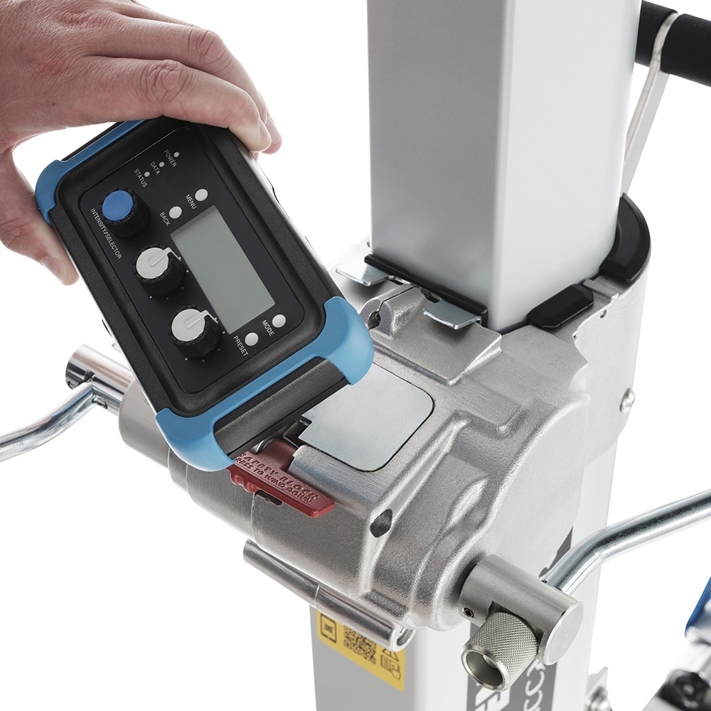 ライト調整用のリモコン置き場として使えるマグネット式プレートや、バラストのレール受けとなるフックを装備しており、移動や運用時に非常に便利です。TÜV が認める高い安全性