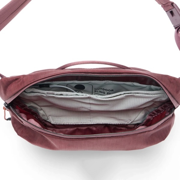 アウトドアスリング2Lは、超軽量でコンパクトな、必需品を手軽に持ち運ぶのに最適なスリングバッグです。シンプルなデザインで、スリングバッグ単体としても、アウトドアバックパックのサブバッグとしても活躍します。