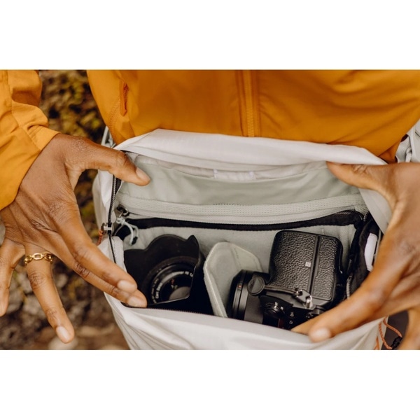 トレッキングなどのアウトドアアクティビティから日常使いまで、さまざまな場面で活躍します。別売りのカメラキューブ(Xスモールサイズ)と組み合わせて、アウトドア向けの軽量・コンパクトなカメラバッグとしても使用できます。