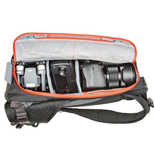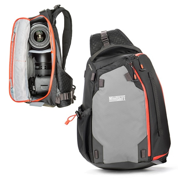 高密度な撥水生地で撮影機材を保護するスリングバッグ