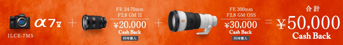 α7 V発売記念キャンペーン(以下「本キャンペーン」)では、キャンペーン期間(購入期間)内に対象商品を購入し、当社指定の手続きに従い応募期間内に不備なくご応募されたお客様に、対象商品ごとに定めた金額をもれなくキャッシュバックいたします。