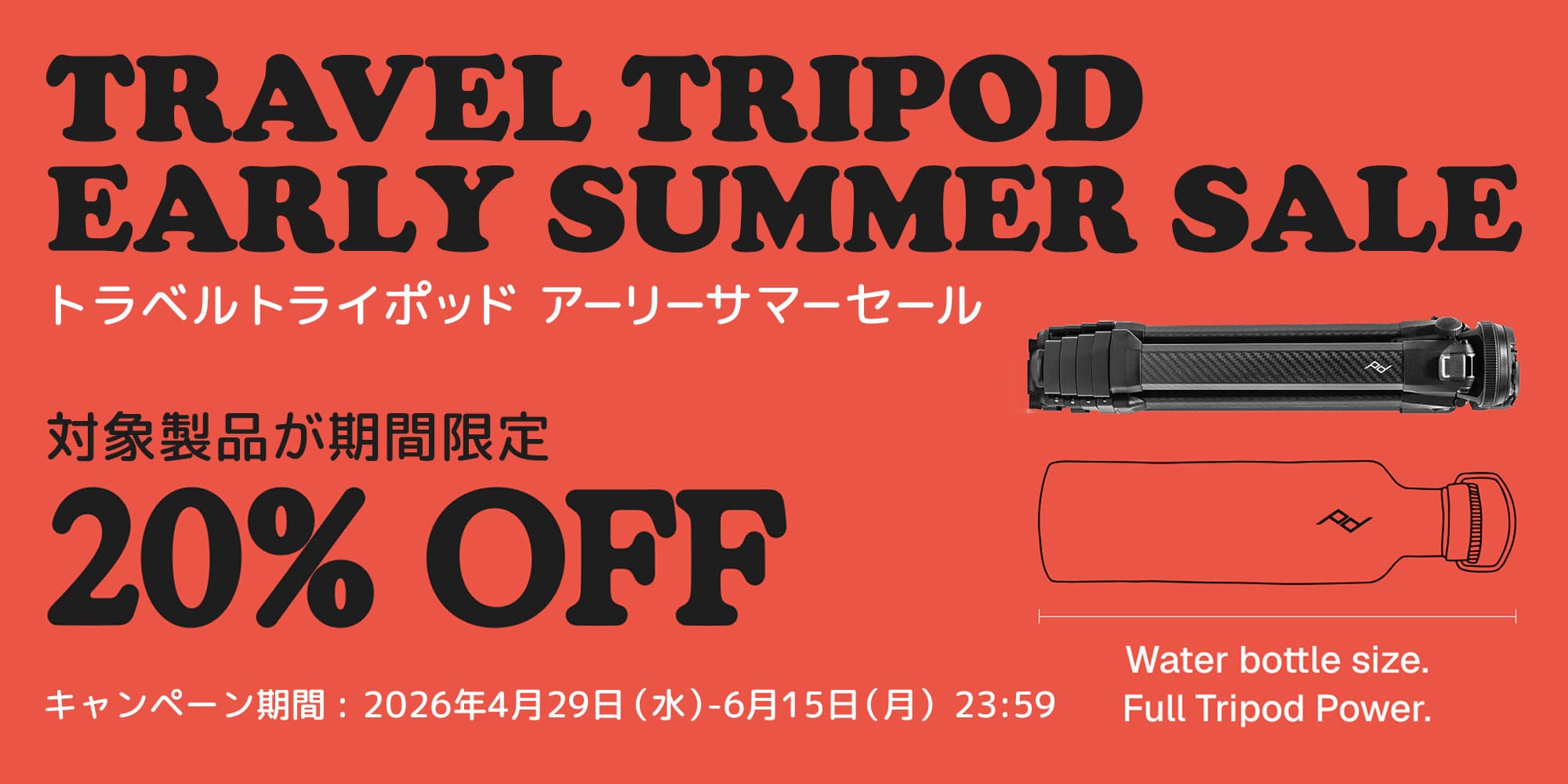 この度、2026年4月29日(水)から6月15日(月)までの期間、同社の「トラベルトライポッド(カーボン/アルミ)」を20%OFFの特別価格でご提供する期間限定セール「TRAVEL TRIPOD EARLY SUMMER SALE」を開催いたします。