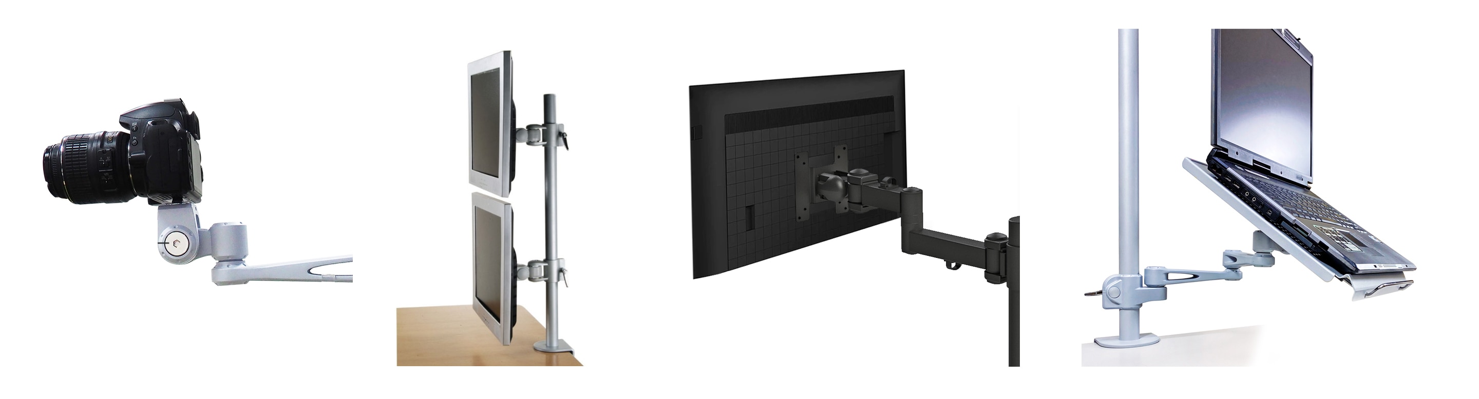 VESA規格に対応したネジ穴などを備えた、調整出来るモニターアームです。