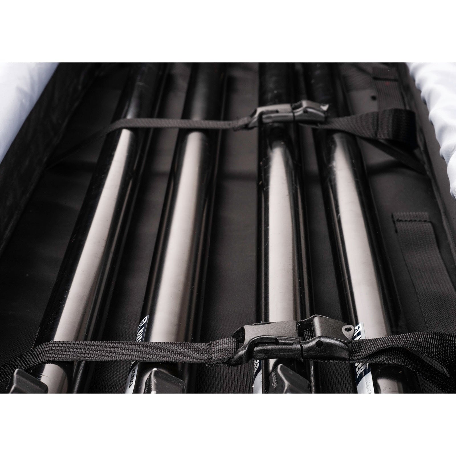 スタジオ撮影に必要な照明用のスタンドをまとめて保管、輸送ができるローリングケースです。ハンドルを四方に付けて持ち運びやすくしています。内側にはタイダウンできるストラップなどを装備しています。脚部分割型の 40 インチのセンチュリースタンド 4 本、130cm までの高さの複数のライトスタンドが収納可能です。